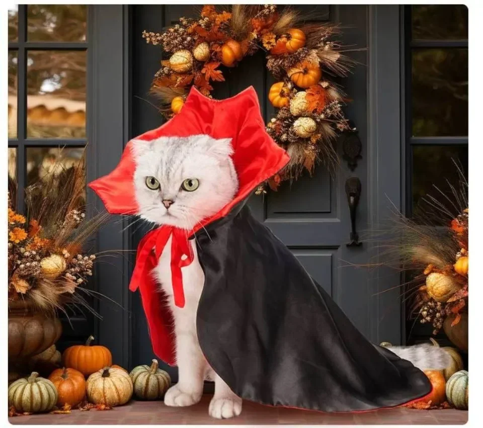 Dê ao seu amigo peludo uma transformação assustadoramente espetacular neste Halloween com a Capa de Vampiro SpookyPaw™, a fantasia definitiva para monstrinhos estilosos. Projetada para gatos e cães pequenos, esta capa com acabamento em cetim combina uma dramática coleira vermelha com uma capa preta macia, criando o icônico visual de vampiro.